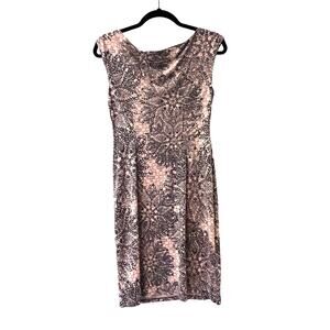 Connected Apparel WRAP DRESS Womens 6P Pink Gray Side Gather Chain Collar Sleeveless - New Condition