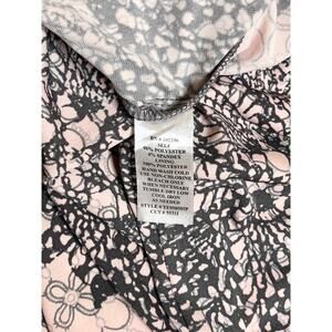 Features: Side Gather, Wrap Style, Chain Collar Detail. Pink Gray Floral
