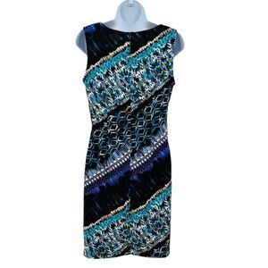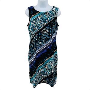 Connected Apparel Watercolor Blue Turquoise Geometric Design Sheath Dress