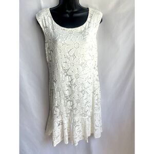 Connected Apparel White Overlay Dress Floral sz 6 Prairie Cottagecore Sundress