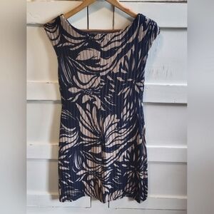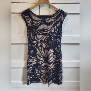 Connected Apparel Women Sleeveless Knit Dress | Navy Tan Tropical Print | Sz 6
