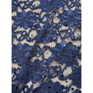 This elegant navy dress by Connected Apparel features a lace bodice and a flattering draped skirt. Ideal for evening events, it offers a sophisticated look.