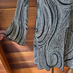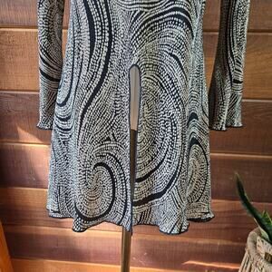 Connected Apparel Women's Long-Sleeve Tunic Top Swirl Print 12 Black & Beige