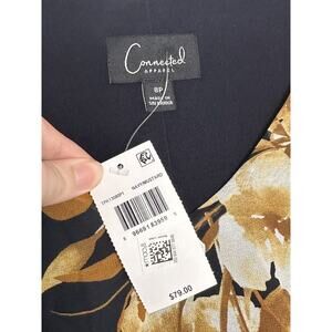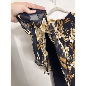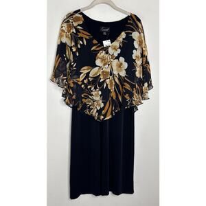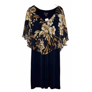 Connected Apparel Women’s Navy/Mustard Sheer Cape Overlay Sleeves Floral Sz 8P