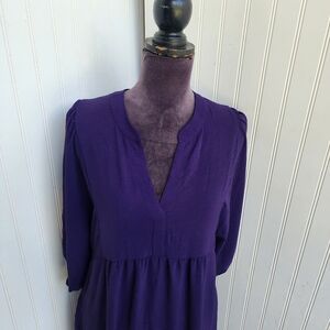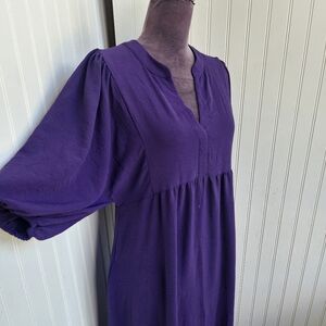 Connected Apparel Women's Purple Babydoll Boho Dress Puff Sleeve Pockets Sz 4
