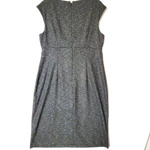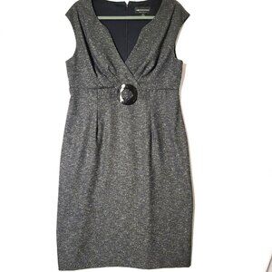 Connected Apparel Apparel Womens Sheath Dress , Sleeveless, V-Neck, Knee Length, Black Waist Accent Buckle , Bust Lining 16 Grey Tweed Polyester Rayon Spandex, Polyester Lining , Back Zip Closure