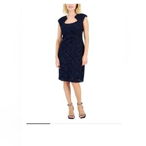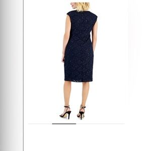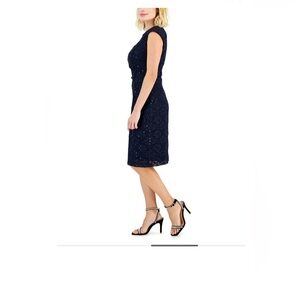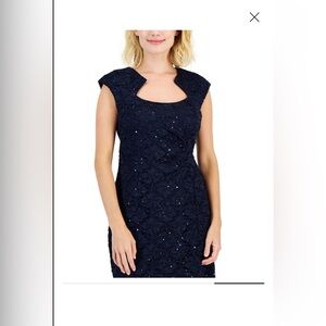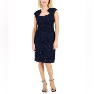 The delicate lace, glamorous sequins, and flattering neckline of this Connected dress come together to create a timeless and captivating ensemble designed to make you shine at you next party. Approx. 37" long from center back neck to hem and varies 1/4" between sizes