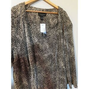 Connected Apparel Women’s 30W Open Front Cardigan Black Cream Animal Print NWT