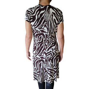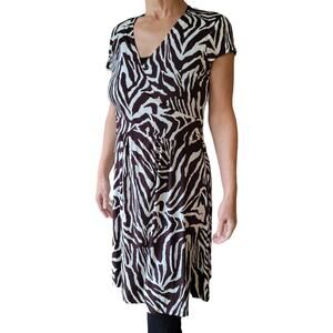 Connected Apparel Zebra Print Faux Wrap Dress 12 Stretch Ruched Bodycon Career