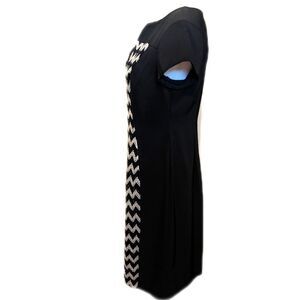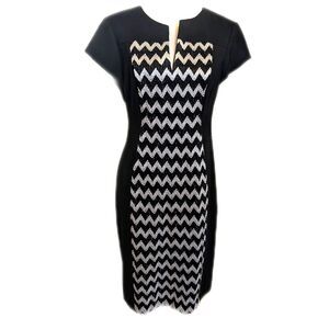 Connected Apparel short sleeve black knee length dress w/ chevron sparkle 10