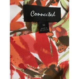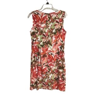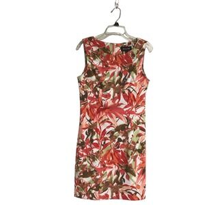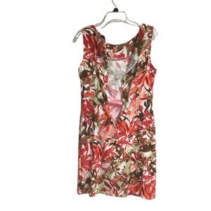 Sleeveless floral dress, colors include pink, orange, green, white (see photos). Zipper closure down the back. Made in Sri Lanka.