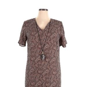 Connected Brown Giraffe Print Lightweight Dress With Necklace Size 14 NWT Midi