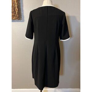 Connected Dress 10 Black White Polka Panel Stretch Shift Short Sleeve Washable