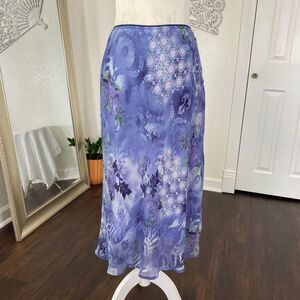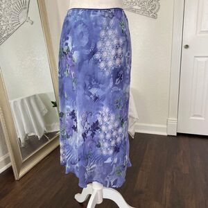 Connected Early 2000's Flower Rose Purple Blue Mesh Midi Skirt L
