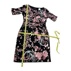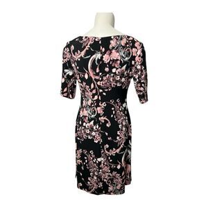 Connected Floral Black and Pink Sheath Stretch Dress Sz 4P 4 Petite NEW