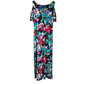 Connected Petite Dark Floral Tropical Cold-Shoulder Maxi Dress Size 6 Petite. New with tag, no flaws. Measurements are approximates only.