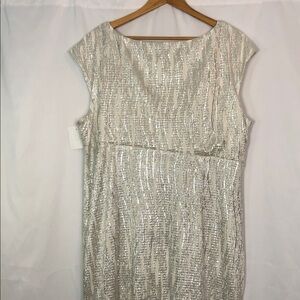 Connected Woman Plus Short Sleeve Silver Metallic Midi Dress Size 22W