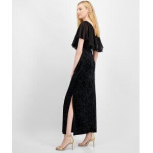 Make it a special night in a spectacular dress from Connected. This floor-length style features velvet fabric and a semi-sheer capelet ruffle. open box NWT