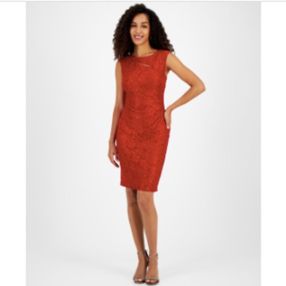 Say cheers to your new cocktail outfit: Connected's sequined-lace sheath dress. open box NWT