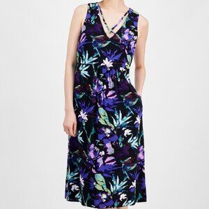 Connected Women's Strappy V-Neck Floral Midi Dress – Violet – NWT Size 6