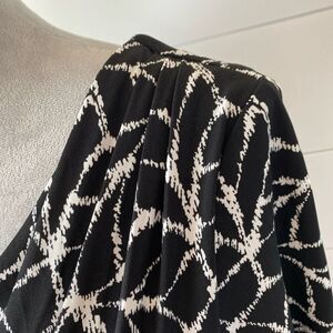 Show off your elegant style in this black and white Women's Asymmetrical Neck Elbow Sleeve Dress from Connected Apparel.