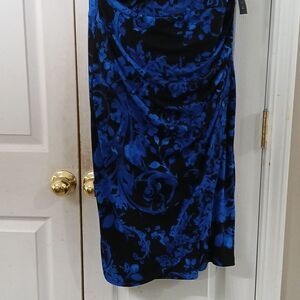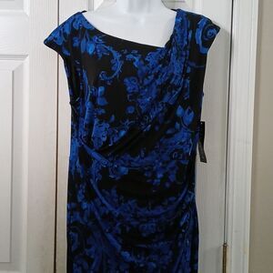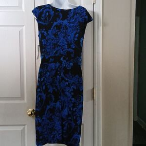 Connected Apparel royal blue black floral print business casual dress Sz 12 NWT
