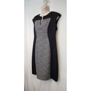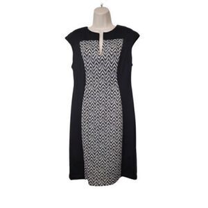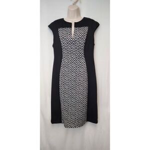 Connected Apparel Stretch Sheath Black/White Chevron Panel Dress 12 V-Ne…
