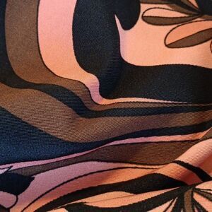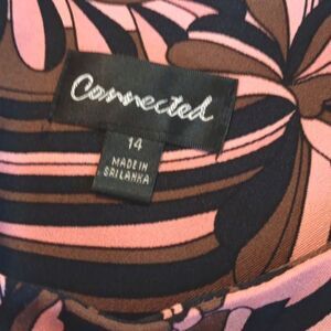 This colorblock dress has bold graphics reminiscent of Austin Powers! The sides are a flattering black. Back zip. The fabric is satiny on the inside, soft against your skin. Size 14 measures 42 at chest, 36 at waist, 42 at hips. 46 at bottom hem. 38 long from shoulder to hem. Bold and fun!