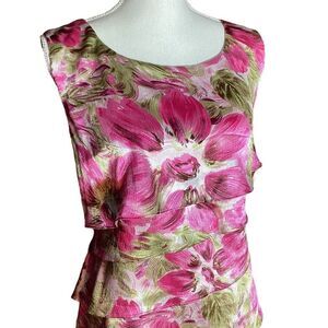 Connected Strapless Hot Pink Fuchsia Floral Tiered Ruffle Layered Cocktail Dress Size 18