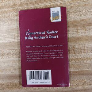 The product is a vintage black and white paperback edition of "A Connecticut Yankee in King Arthur's Court" by Mark Twain, published in 1984 by Academic Industries in the United States. This classic fiction novel is part of the Pocket Classics series and includes illustrations. The book, targeted at adults, offers a blend of action, adventure, and mystery, making it a valuable addition to any collector's shelf of comics and graphic novels from the Copper Age.
