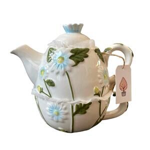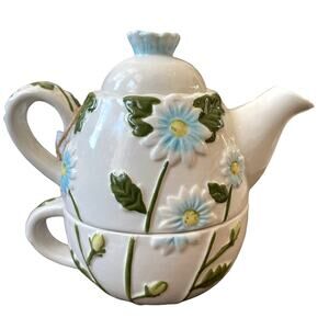 Connections 3 pc Hand Painted Spring Floral Ceramic Tea Pot & Cup For One NEW