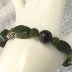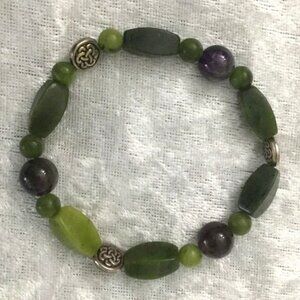 Connemara Marble Amethyst Beaded Stretch Bracelet NEW