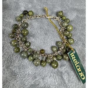 Set of two authentic Connemara Marble bracelets, handcrafted in Ireland by J.C. Walsh & Sons Ltd. Each bracelet is strung with polished green marble beads sourced from their quarry in Lissoughter, Connemara, Co. Galway. Includes the original “Made in Ireland” tags.