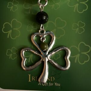 Connemara marble Irish Celtic scarf ring w shamrock NWT