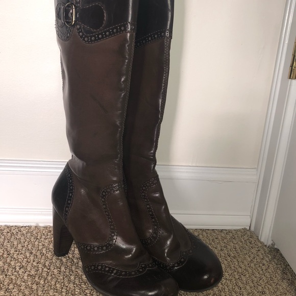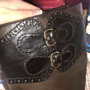 Size 7, Connie boot with low heel, brown with darker brown leather detailing