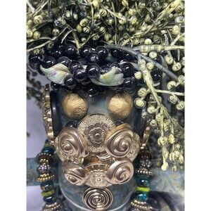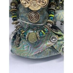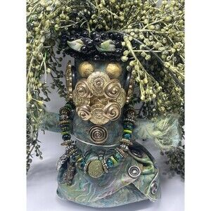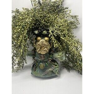 This collectable doll is one of a kind hand made by Mardi Gras Mischief Creations by Connie Born in Louisiana. Unique piece crafted from embossed Italian lambskin. Representing swamp people the doll is full of details from its button face, bug metal belt, leather body to its floral sprays hair. Signed and dated 8-13-2017 by artist. Measuring approximately 11 inches tall. This artist pieces are listed and selling for $500 plus. Great unique collectible piece. Comes from a smoke free home.