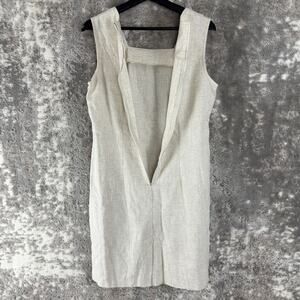 Connie Choi Size S Linen Blend Square Neck Mini Shift Dress Beige Sleeveless Zip