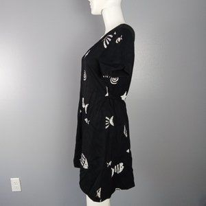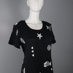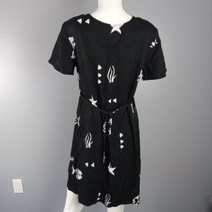 Connie Choi Women's Knee Length Shift Dress Size Medium Black Fish Print VTG
