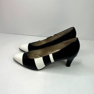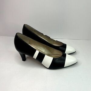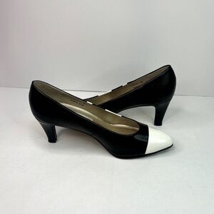Connie Italian Leather White Cap Heel Pumps Black White Comfy Womens Designer