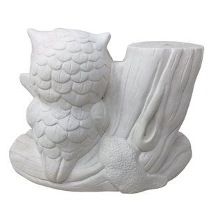 Craft GIft - "Connie Loves Tom" Etched in heart on log - Cute Owl with flower - bud vase or incense. Small hole in top