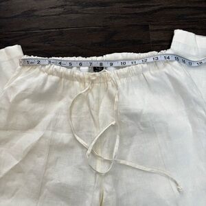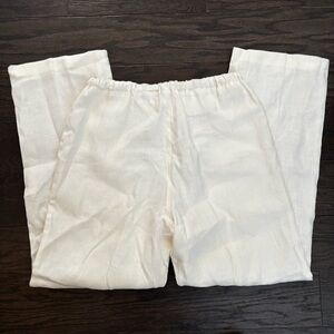 Comfortable cream linen pants with drawstring waist. Fully lined