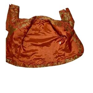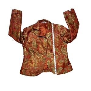 Beautiful silk jacket, rust in color with a green and gold floral pattern