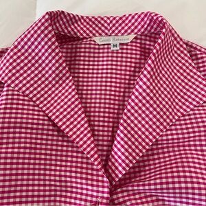 Connie Robertson Silk Top Pink and White Gingham Size Medium Designer Tie Waist