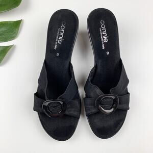 Connie Sandals Black Fabric Wedge Heel Lightweight Slip On Italy Women's 9