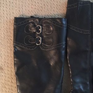 Tall black Connie healed boots. Zips inside. Buckle accent. Very good used condition.