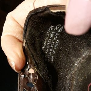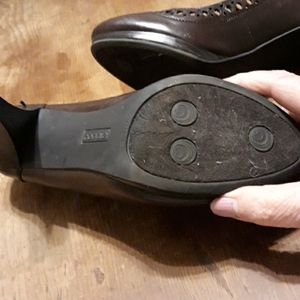 Connie brown Vegan leather heels. Felt on bottom of shoe still there. Look new, but gently worn twice. Cute design.
