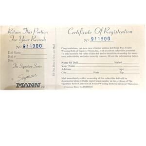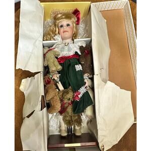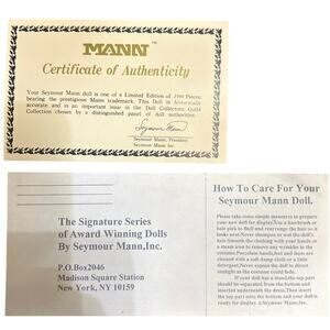 This Connoisseur Collection Doll by Seymour Mann is NEW in the original box and packaging and is in excellent condition! Vintage 1997, this doll is titled "The Bear Collector" and comes with a stand, teddy bears and all the original accessories! Style # FH853 and manufactured in Taiwan, this is truly a great, rare find for your collection-make this yours today! #3542