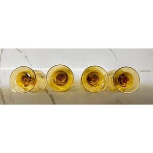 Elevate your glassware collection with these Connoisseur Tawny Water Goblets by the renowned Libbey Glass Co. A stunning addition to any mid-century modern or vintage-inspired home, these goblets showcase timeless elegance with their rich amber-gold hue and classic design.