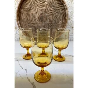 Connoisseur Tawny Water Goblets | Libbey Glass Co | MCM Amber | Set of 4