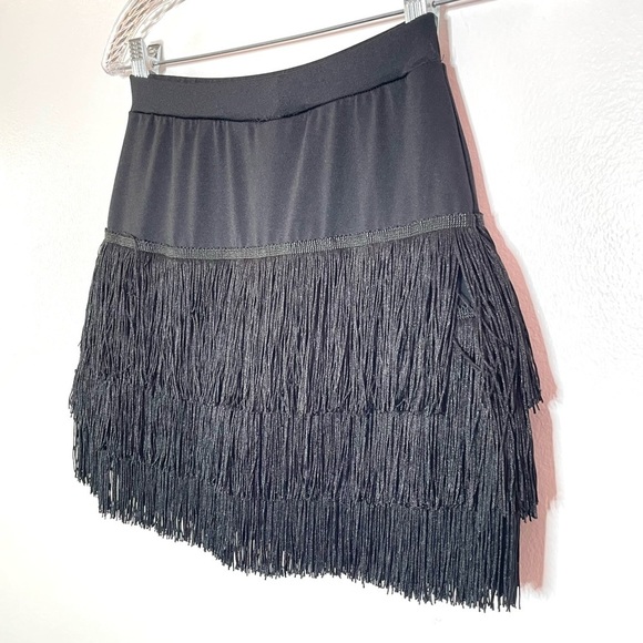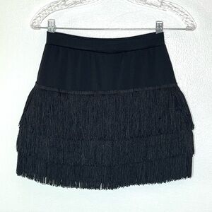 Conny Black Stretch Fringe Mini Skirt Skort Size Small